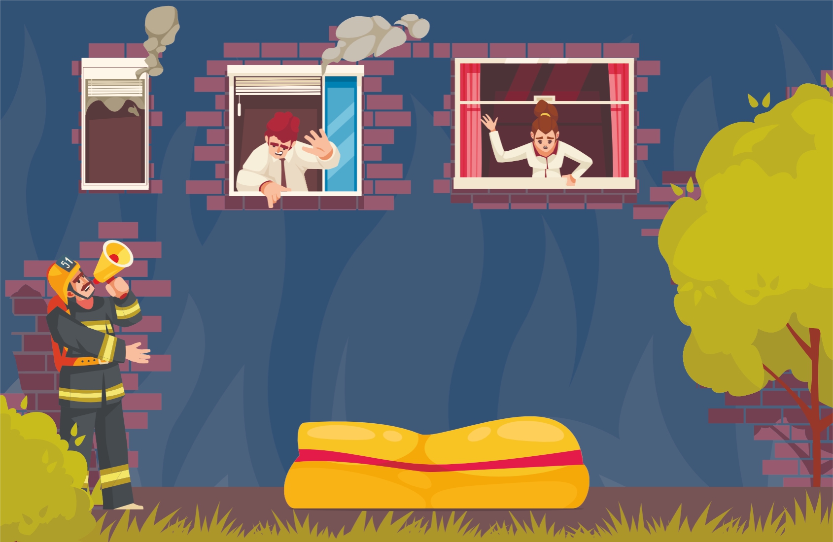 - Не бегать в горящей одежде.